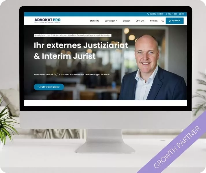 Die Kanzlei hatte den Anspruch, ihre Leistungen im Bereich Datenschutz, Compliance und IT-Recht klar zu kommunizieren und neue Mandanten über die Website zu gewinnen.