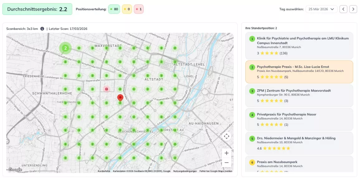 Die Praxis wird gezielt dort sichtbar, wo aktiv nach Unterstützung gesucht wird – direkt in der Region.